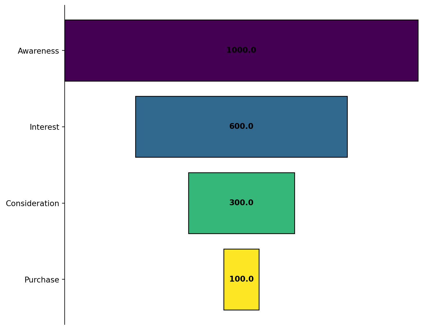 These tools are implemented with Matplotlib, the core plotting library in the Python scientific stack. Matplotlib provides low-level control over marks, axes, color maps, and annotation, which makes it well-suited for specialized business visuals such as funnel, pareto, and waterfall charts. The functions in this category expose those capabilities through spreadsheet-friendly interfaces while returning standard figure objects for Python workflows.